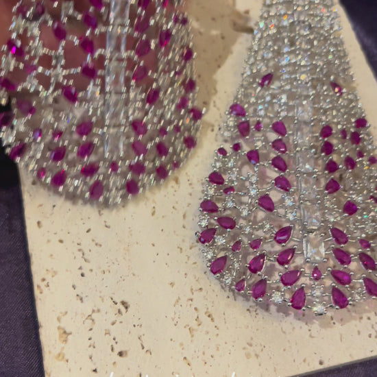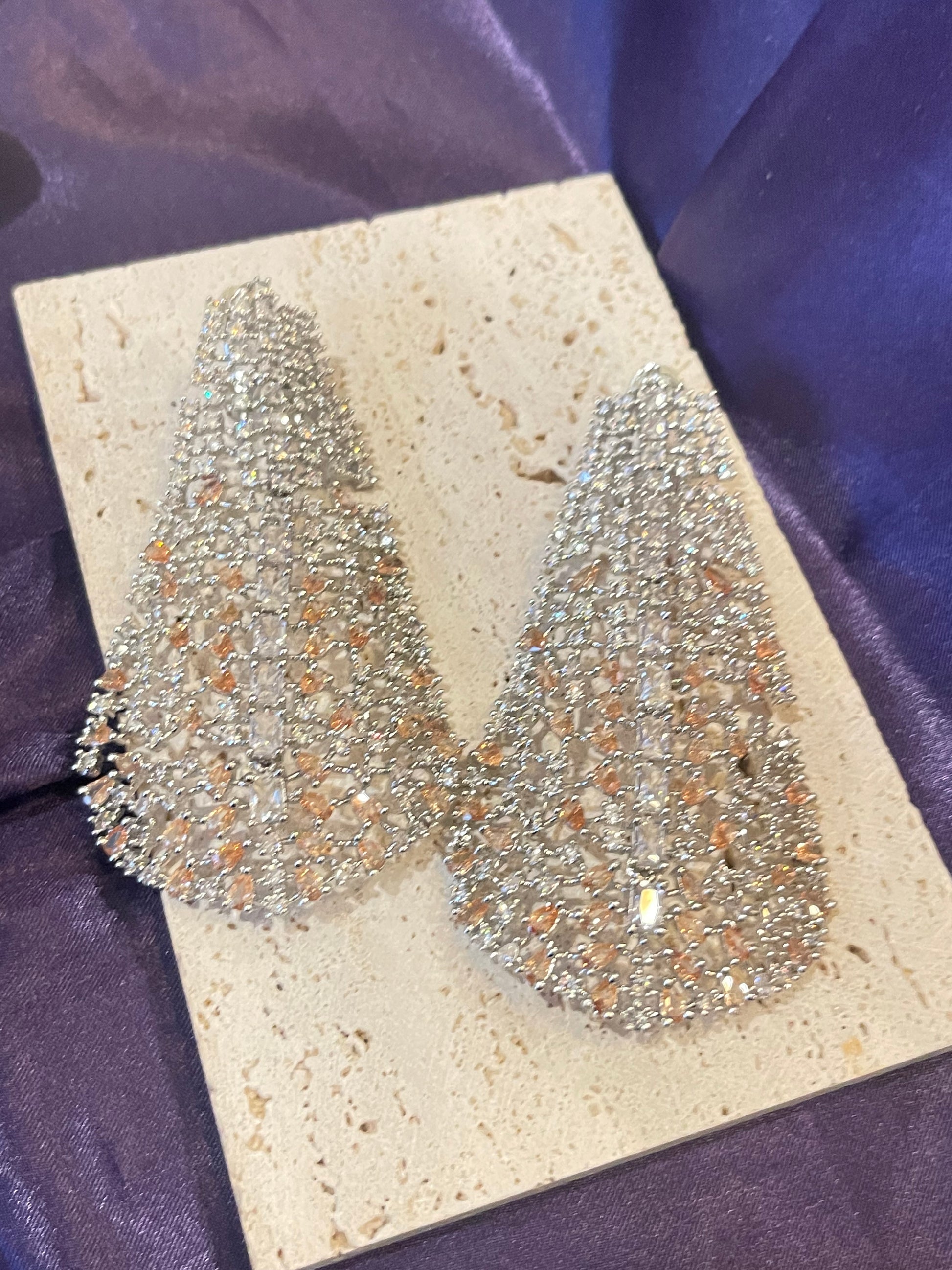 An elegant statement piece designed to capture light from every angle. The Noor Cascade Earrings feature a delicate lattice of shimmering stones arranged in a graceful teardrop silhouette, creating a soft cascading sparkle with every movement. Lightweight yet striking, they bring effortless glamour to festive wear, weddings, and formal evenings. Crafted to elevate both traditional and modern outfits, these earrings are the perfect blend of timeless charm and contemporary elegance.
